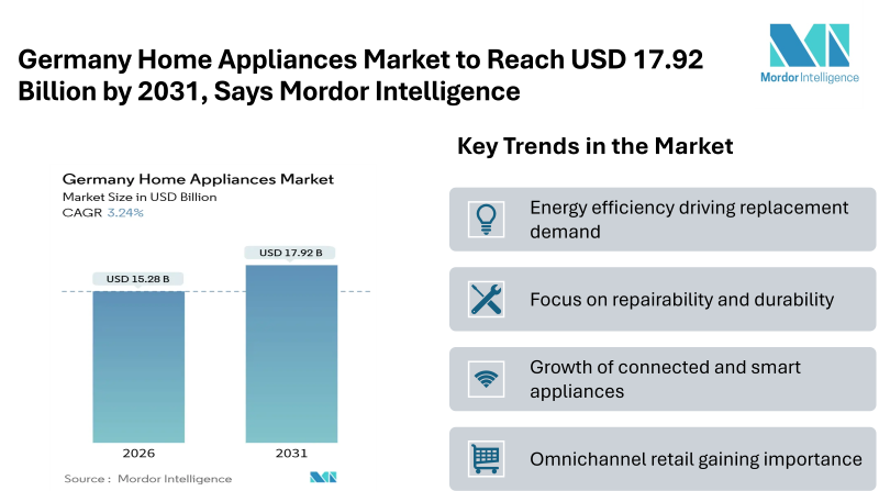 Home Press ReleasesGermany Home Appliances Market to Reach USD 17.92 Billion by 2031, Says Mordor Intelligence