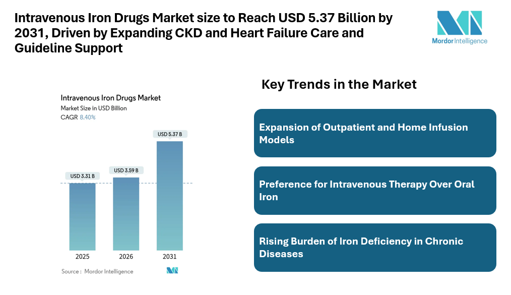 Intravenous Iron Drugs Market size to Reach USD 5.37 Billion by 2031, Driven by Expanding CKD and Heart Failure Care, Rising Outpatient Infusion Use, and Guideline Support