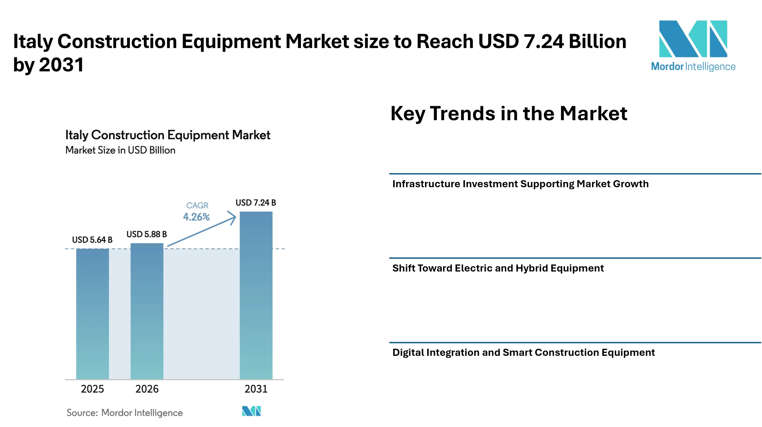 Italy Construction Equipment Market size to Reach USD 7.24 Billion by 2031 Driven by Infrastructure Spending, Green Equipment Demand, and Digital Construction Practices – Mordor Intelligence