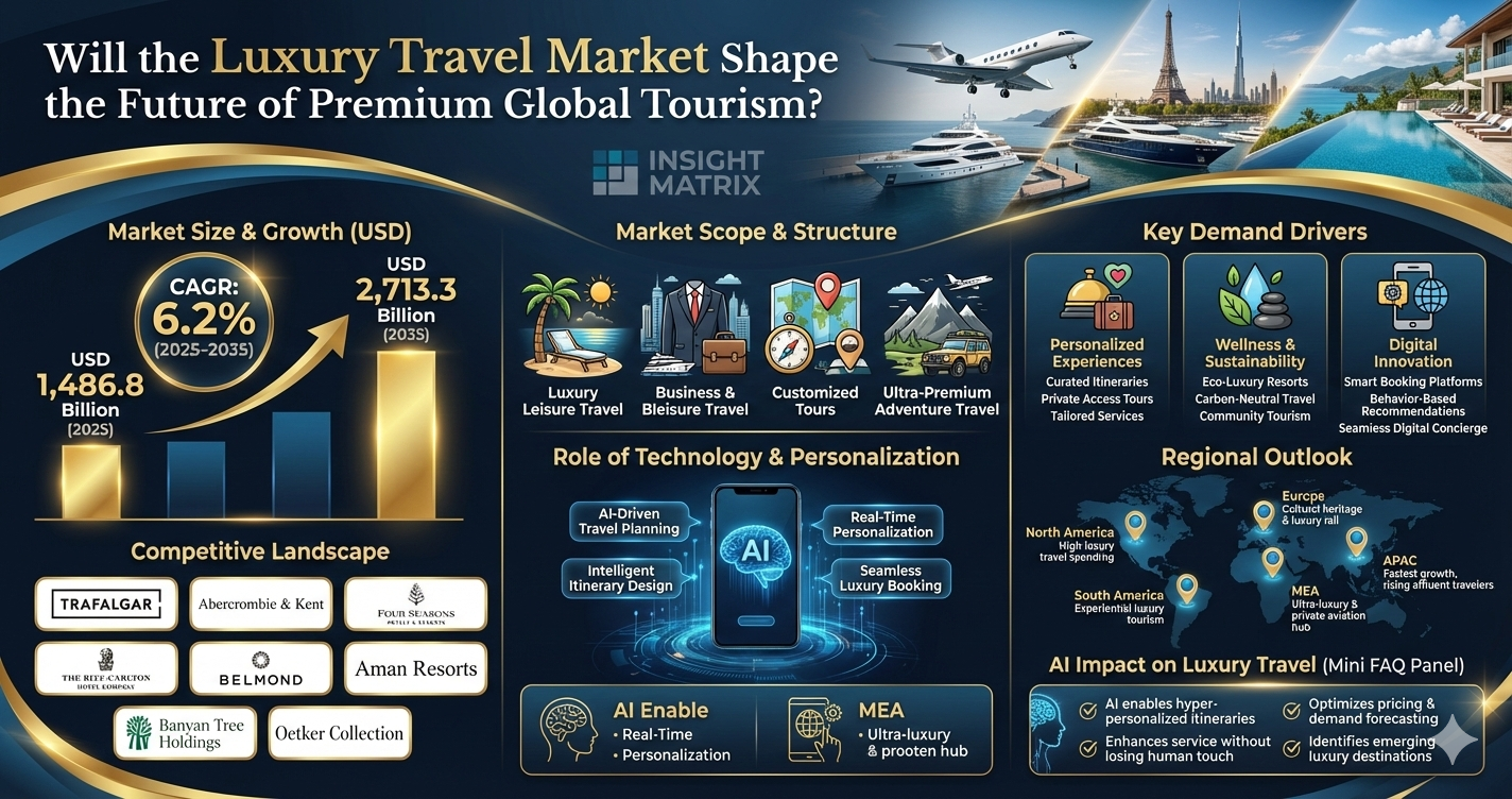 Home Press ReleasesLuxury Travel Market to Reach USD 2713.3 Billion by 2035, Driven by Rising Demand for Personalized Experiences at a CAGR of 6.2%