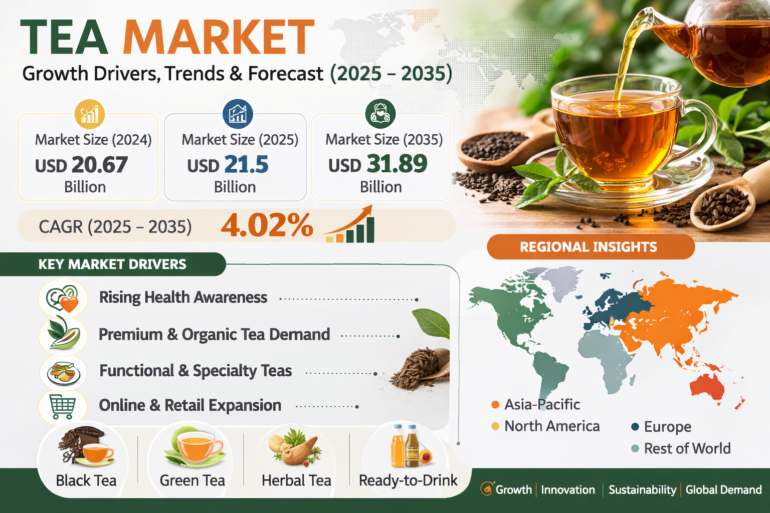 Tea Market Size to Reach USD 31.89 Billion by 2035 | Growth Drivers, Trends, and Industry Analysis